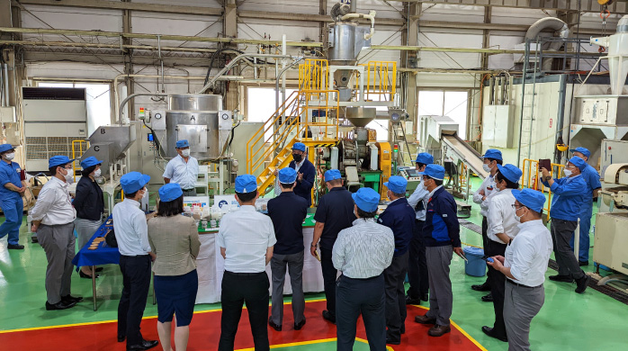 有力な新技術の一つとして期待している、新たな混合溶融装置の視察 - 研究会の方針発表